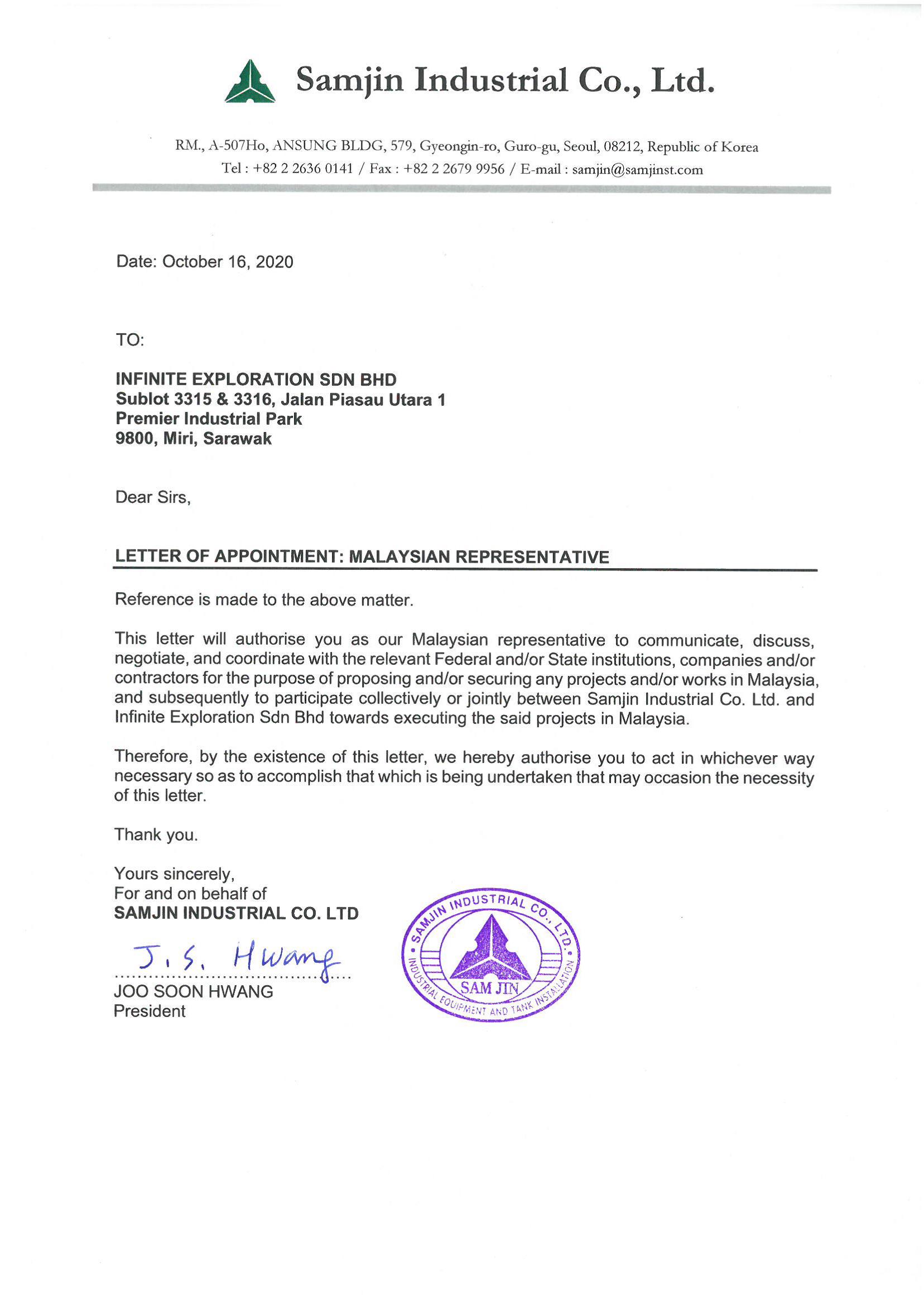 IESB is pleased to announce that we have been appointed as the Malaysian Representative for Samjin Indtrial Co. Ltd, Korea to enable jointly participation on projects and tender bids in Malaysia. With their expertise in mega construction playing a critical role in our niche of business, IESB recognizes that we need to accelerate the development of our construction team to ensure competitiveness and holistic solutions to our potential clients. This creates a milestones to IESB for the first international job after 3 years incorporated.